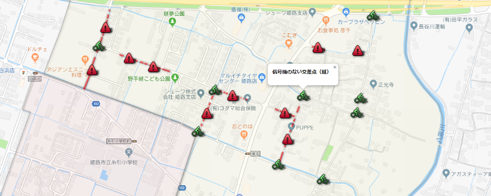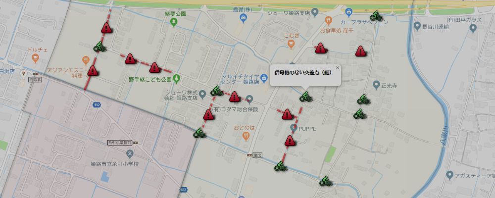 ※ 危険箇所 ⇒ まだまだ情報が少ないです。危険情報は随時受け付けておりますので、情報がある方はこちらのページ をご覧の上、専用フォームからお知らせ下さい。
