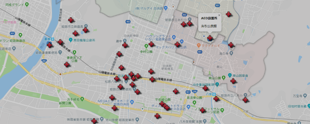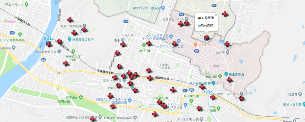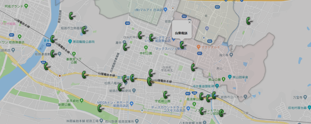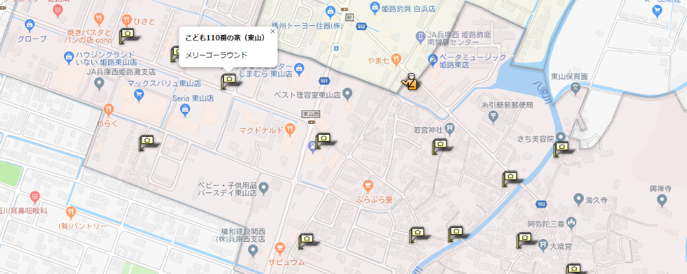 公衆電話 の位置についても確認することが出来ます。 こども110番の家については、子供達の説明に利用して下さい。