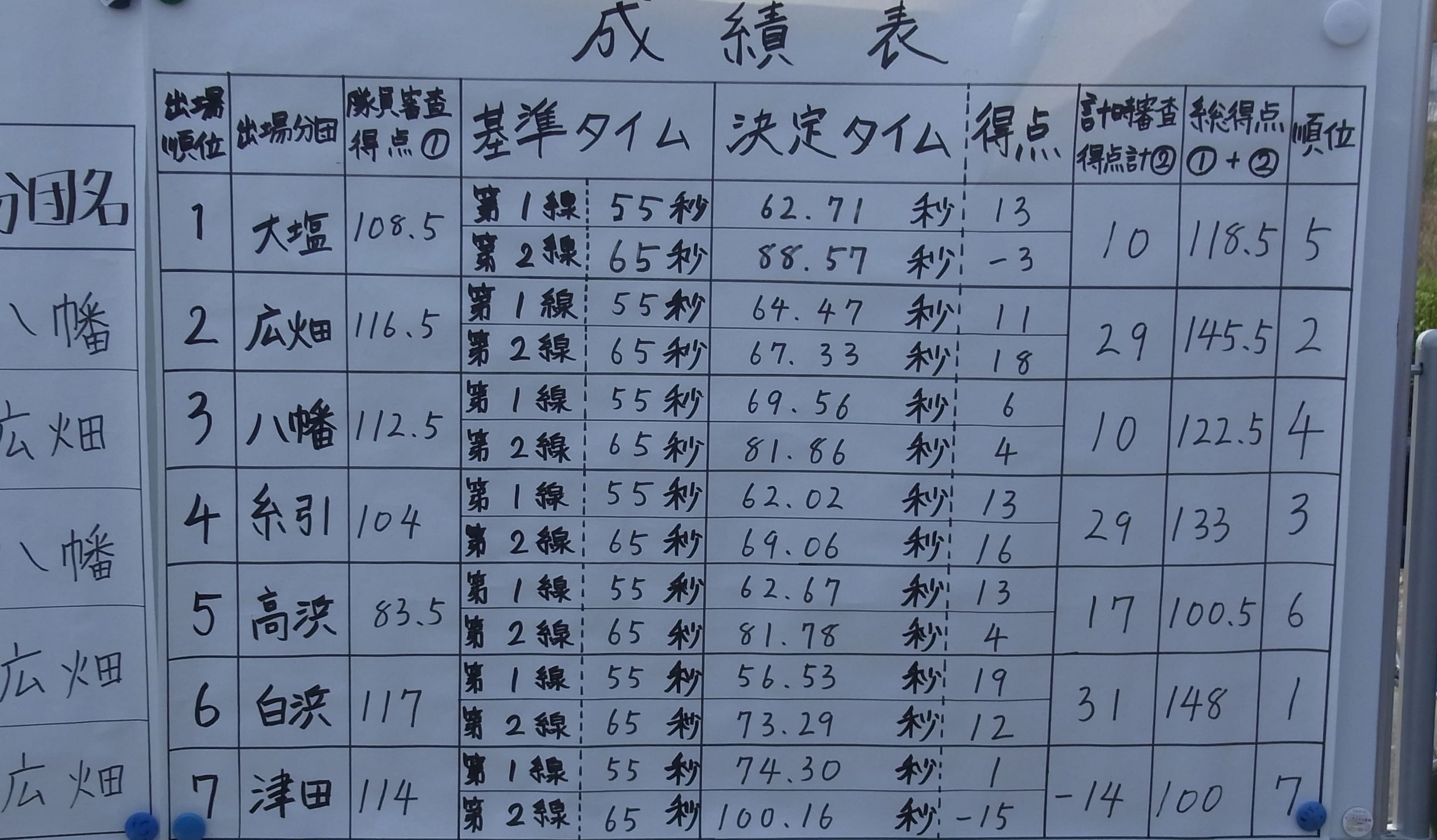 出場分団 | 総得点 | |
