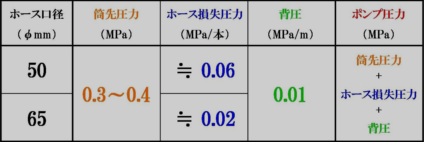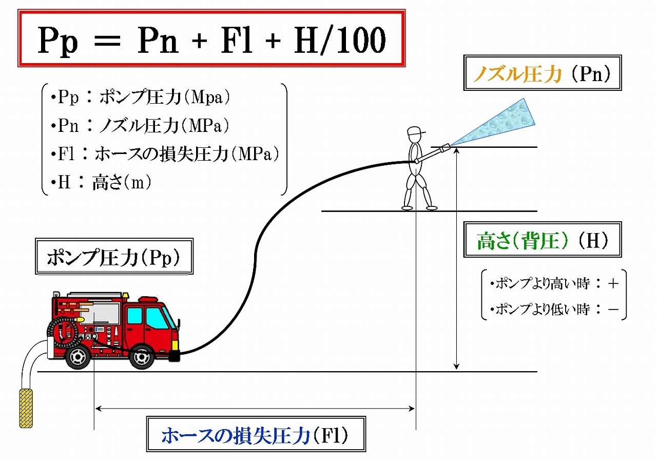 ① ノズル圧力(Pn):筒先ノズルから放水される時の圧力。