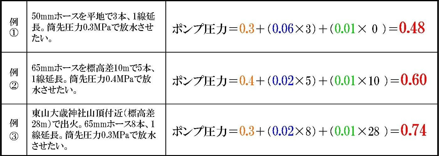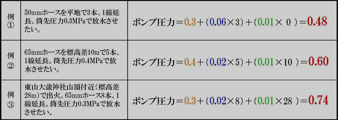 尚、実際の現場では、ホースの折れや破損による損失、消火栓圧力の変動など、予期せぬ要素が加わります。実際の数値と異なることも十分考えられますので、過信しないようくれぐれもご注意願います。