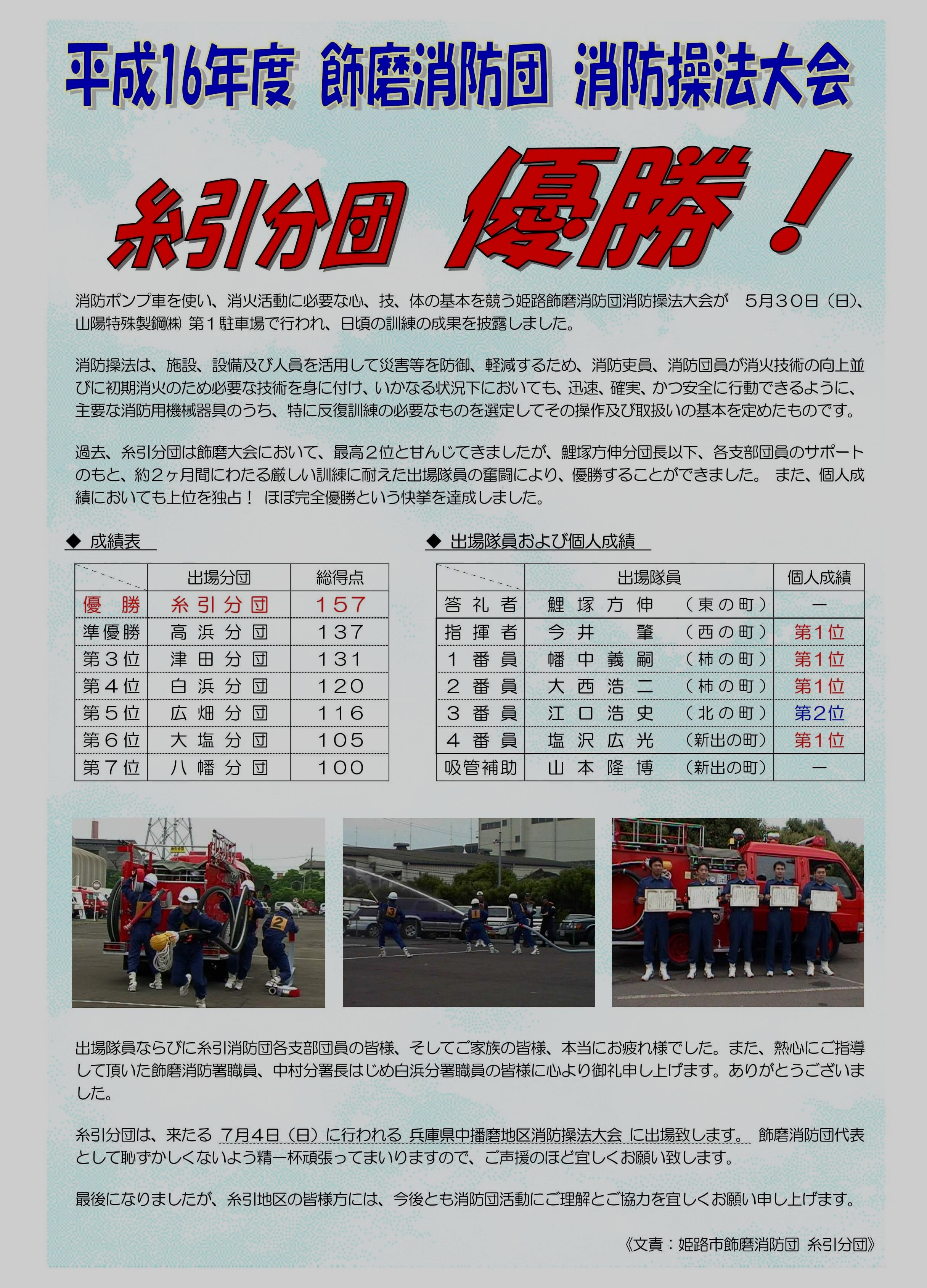 - さらに中播磨地区消防操法大会を勝ち抜くと、兵庫県大会、全国大会へと続いていきます。