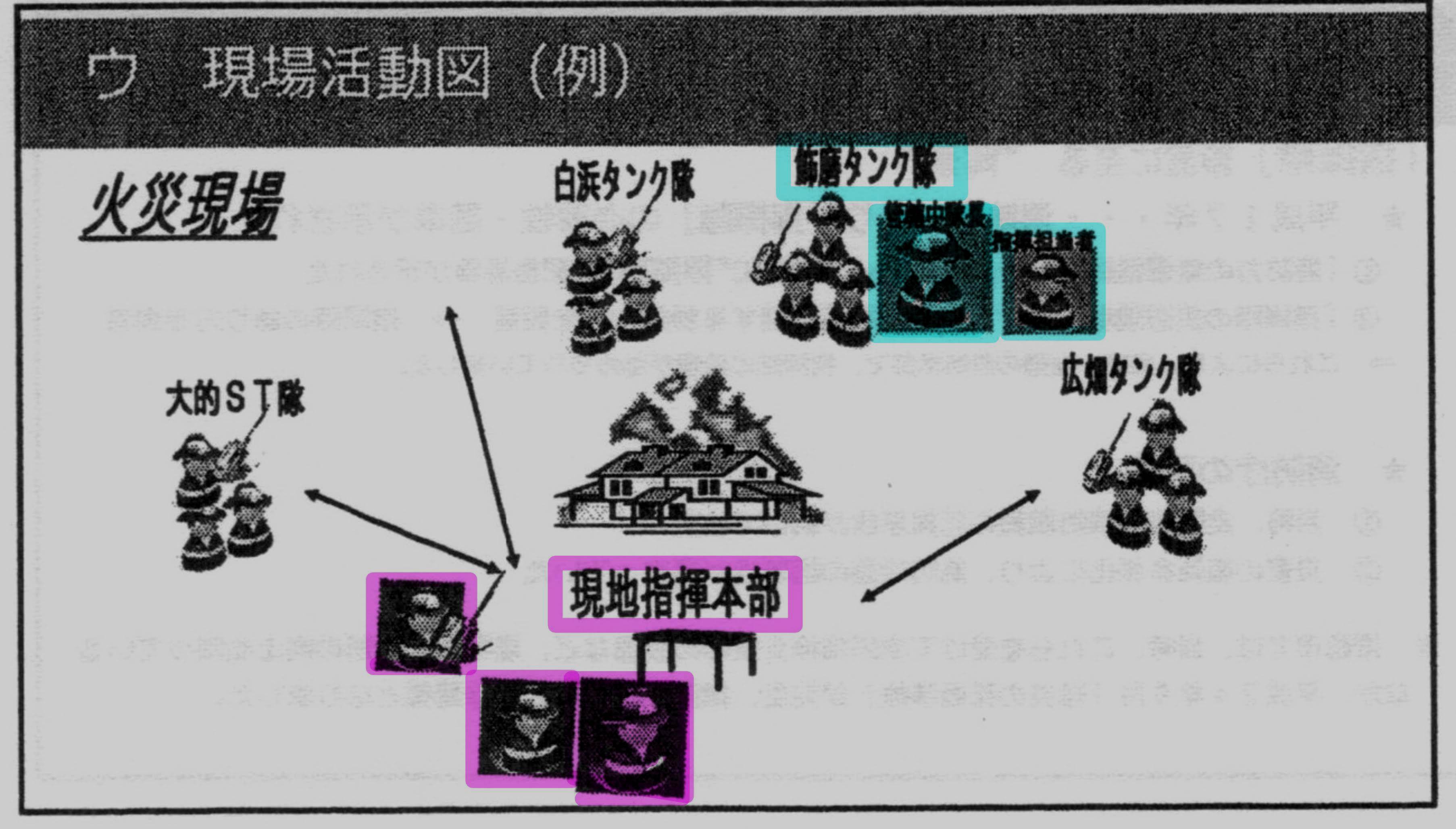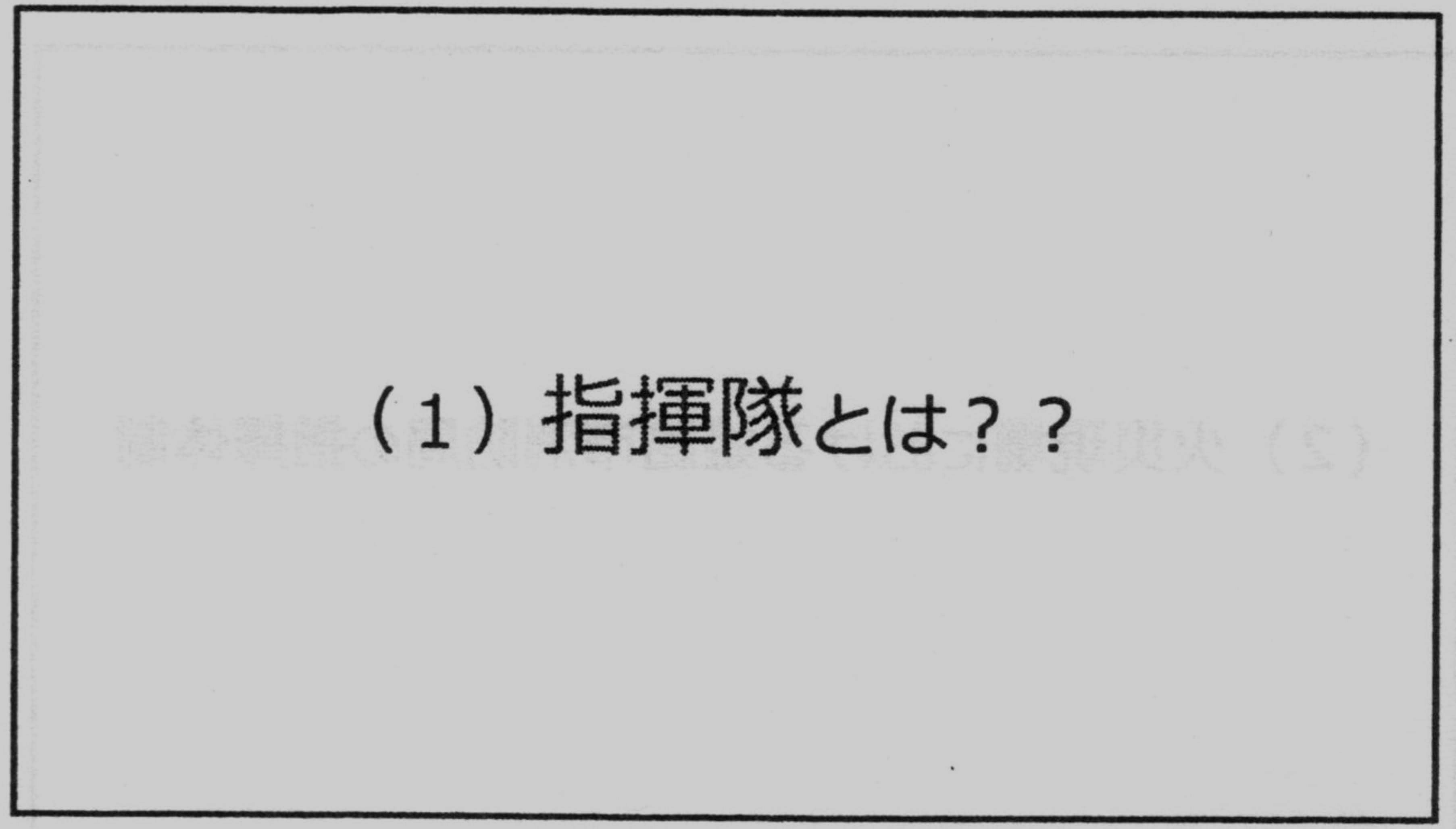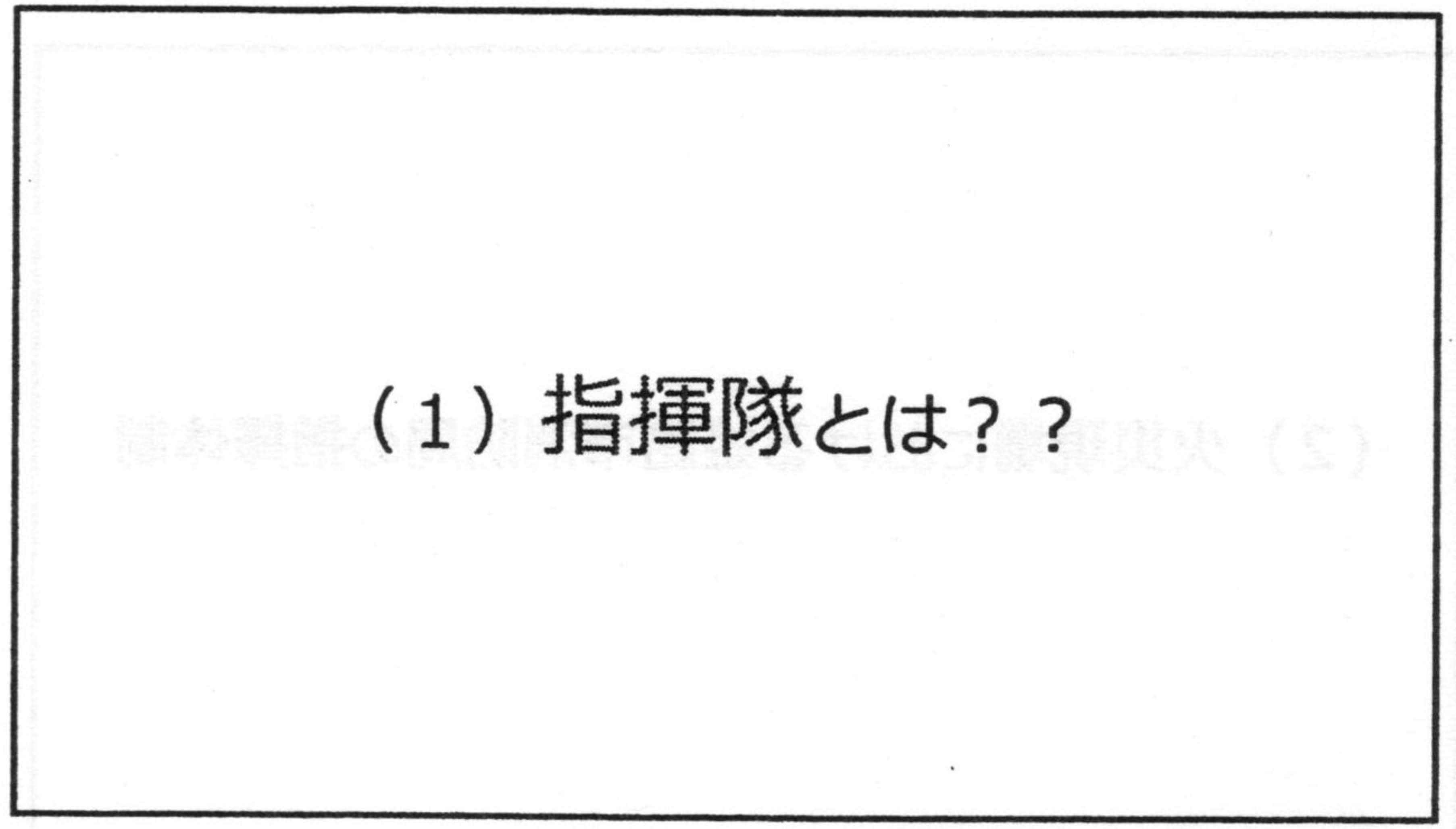 - 下記は訓練当日の資料です。各自火災時の指揮隊のイメージを確認しておいて下さい。