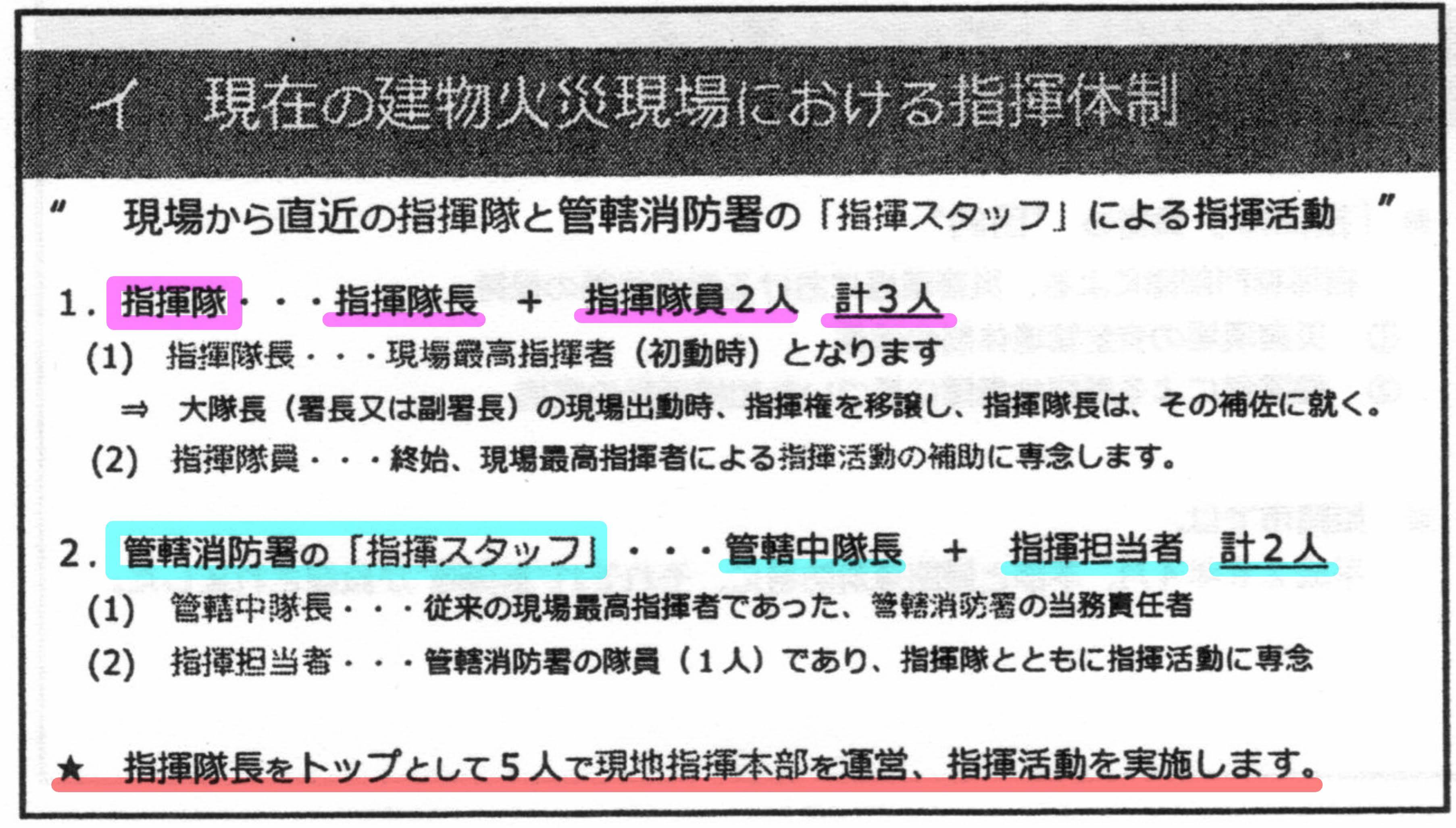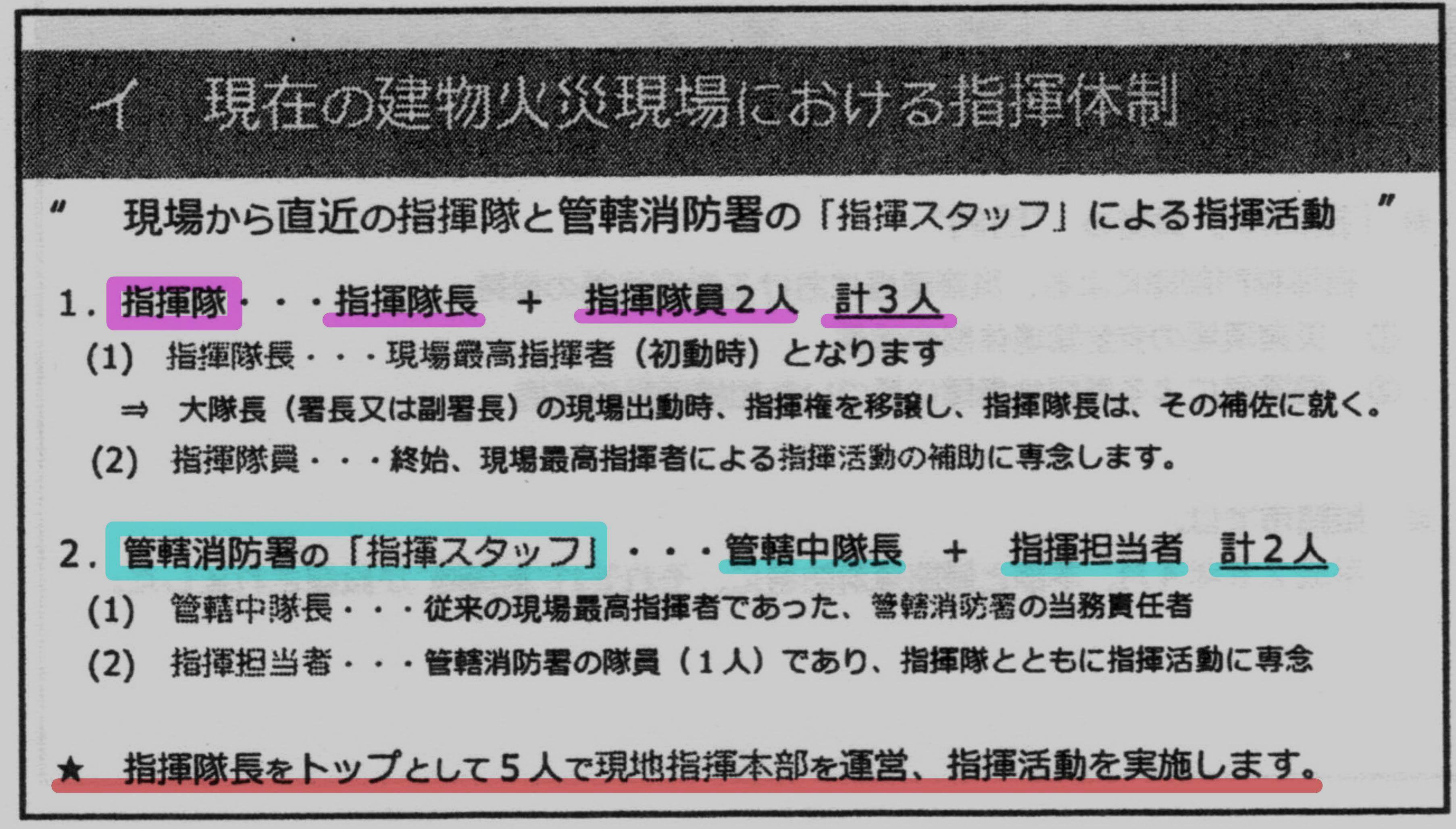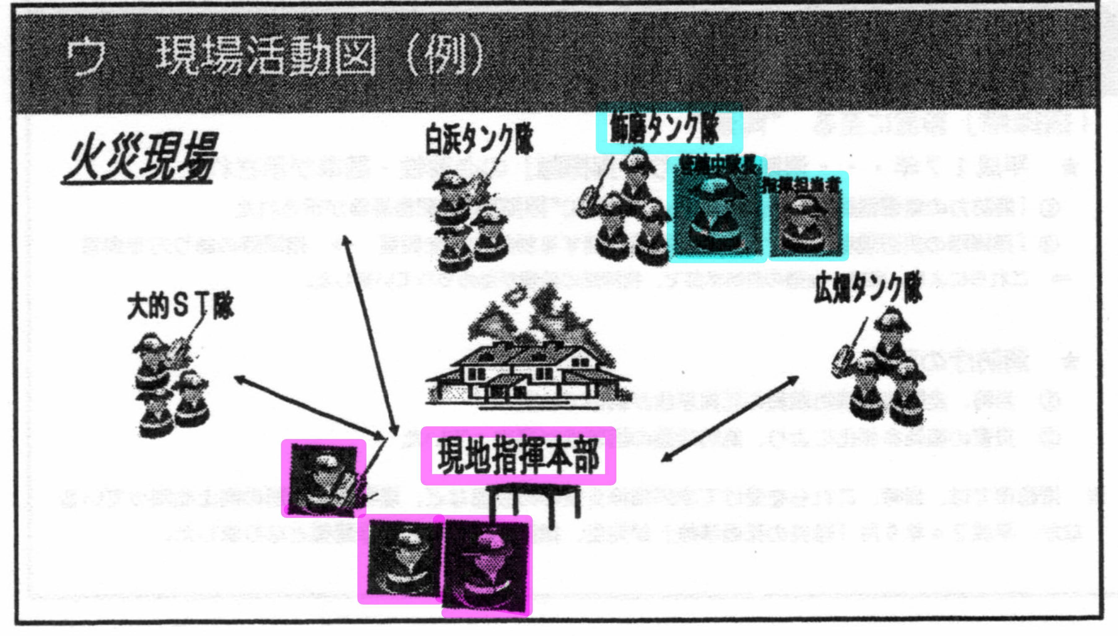 - 下記は訓練当日の資料です。各自火災時の指揮隊のイメージを確認しておいて下さい。